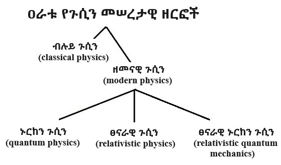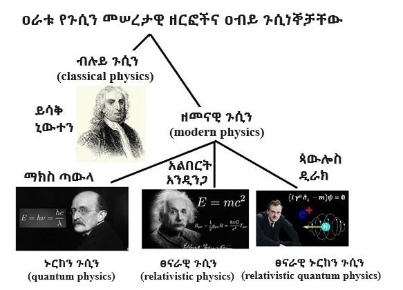 የመጀመርያው የጉሲን መስክ ብሉይ ጉሲን (classical physics) ነበር። የጉሲን መስክ እየሰፋ ሲሄድ ግን ኑርከን ጉሲንን (quantum physics) ቀጥሎ ደግሞ ፀናራዊ ጉሲንን (relativistic physics)፣ በመጨረሻ ደግሞ ፀናራዊ ኑርከን ጉሲንን (relativistic quantum physics) የሚያካትት ሆነ። በዚህም ምክኒያት ከብሉይ ጉሲን በኋላ የተከፈቱት ሦስቱ ዳህራዊ (ማለትም ኋለኛ) የጉሲን መስኮች (ማለትም ኑርከን ጉሲን፣ ፀናራዊ ጉሲን፣ እና ፀናራዊ ኑርከን ጉሲን) ባጠቃላይ አጠራር ዘመናዊ ጉሲን (modern physics) ይባላሉ።