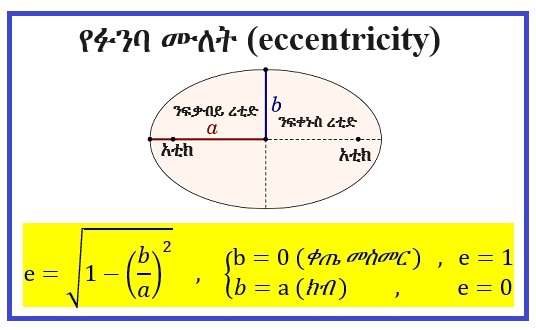 ያንድ ፉንባ ንፍቃብይ ረቲድ (semi-major axis) a ከሆነና የፉንባው ንፍቀኑስ ረቲድ (semi-minor axis) ደግሞ b ከሆነ፣ የፉንባው ሙለት (eccentricity) በሚከተለው ቀመር (formula) ይሰጣል።