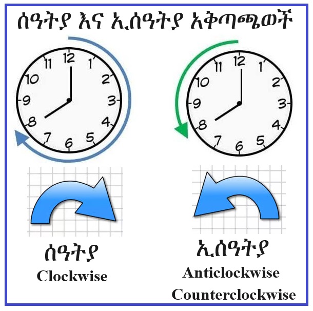 anticlockwise (counterclockwise) = ኢሰዓትያ