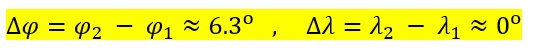 5) በመጨረሻም ነጥቦቹ የሚያገናኘው ያብይ ክብ ደጋን ርዝመት (great-circle arc distance)፣ ማለትም በነጥቦቹ መካካል ያለው ዠአጨር ርርቀት (shortest distance) ማለትም ጅጋን ፍኖት ርዝመት (geodesic path length) በሚከተሉት ቀመሮች ይሰላል።