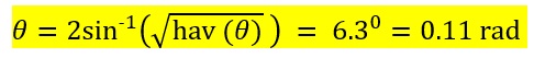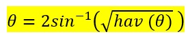 የማናቸውም ዘዌ (angle) ሃቨርሲን እሴት (haversine value) ከተገኘ፣ የዘዌውን እሴት በጉለም (degree) ወይም በጃራ (radian) በሚከተለው ቀመር መሠረት ማግኘት ይቻላል።