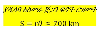 ስለዚህም ያዲሳባ አስመራ ጅጋን ፍኖት ርዝመት (geodesic path length) በቅርበዛ (approximately) 700 ሃጃኖሜትር (700 kilometer) ነው ማለት ነው። ይህ ማለት ደግሞ ካዲሳባ አስመራ ባንድ ሰዓት ውስጥ ለመብረር የሚያስፈልገው ፍጥነት በቅርበዛ (approximately) 700 ሃጃኖሜትር በሰዓት (700 kilometer per hour) ነው ማለት ነው።