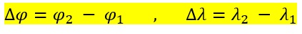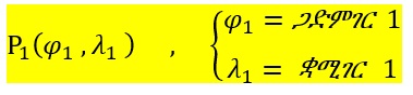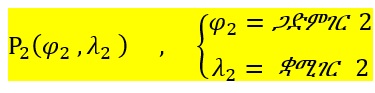 1) በመጀመርያ ደረጃ የነጥቦች P1 እና P2 ጋድምገሮች (latitudes) እና ቋሚገሮች (longitudes) ይታወቃሉ።
