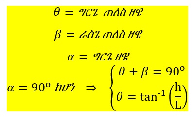 ይህ የጠለስ ዘዌ ቀመር፣ የዛፎችን ቁመት፣ እንዲሁም የተራሮችን፣ የሕንፃወችን እና የመሳሰሉትን ከፍታ ከጠለሳቸው ርዝመት ለማስላት ያገለግላል።