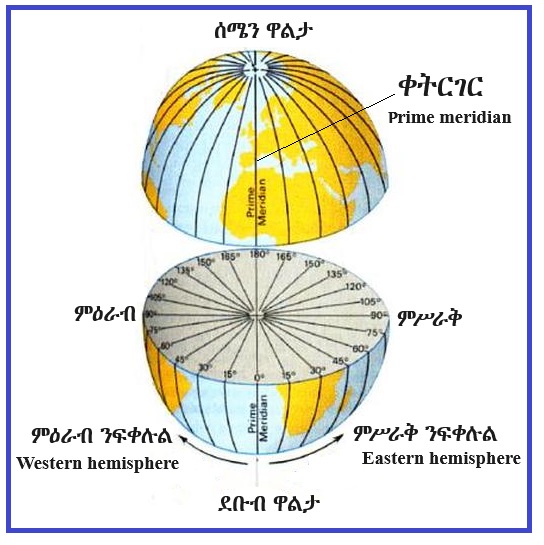 Prime meridian =ቀዳማይ ቋሚገር፣ ቀትርገር