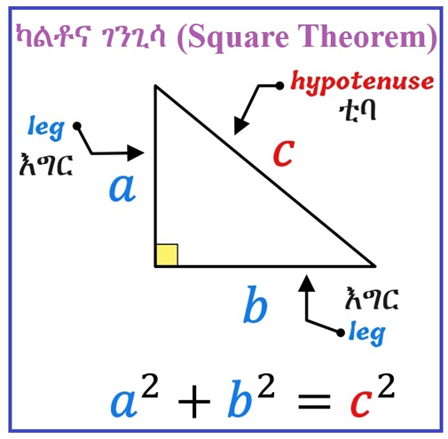 ሩንጋ ስሌጎንን (right triangle) በተመለከተ የስሌጎኑን እግሮች (legs) ርዝመቶች ከስሌጎኑ ቲባ (hypotenuse) ርዝመት ጋር የሚያዛምድ ገንጊሳ (theorem) አለ። ይህም ገንጊሳ (theorem) በፈርንጆቹ አጠራር ፓይታጎራስ ገንጊሳ (Pythagoras theorem, Pythagorean theorem) ቢባልም፣ እኛ ገን ኑባ ገንጊሳ (Nubian Theorem) ወይም ካልቶና ገንጊሳ (Square Theorem) እንለዋለን። ለምን እንዳልነው ደግሞ ስሌጎኖች (Triangles) በሚለው ጦማር ላይ በሰፊው ተወስቷል።