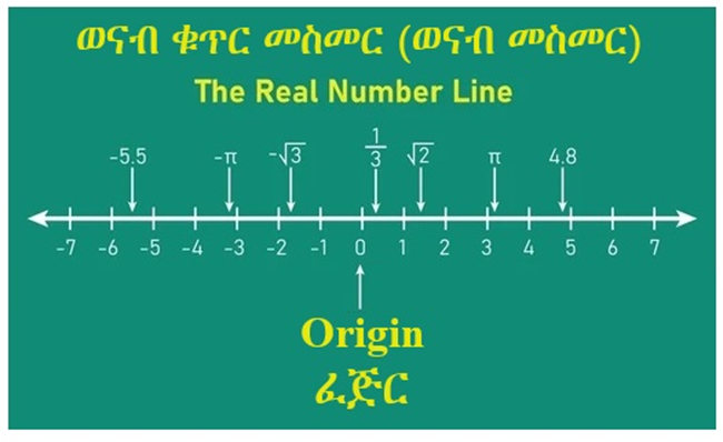 ወናብ ቁጥሮች (real numbers) በቀጤ መስመር (straight line) ላይ በሚገኙ ነጥቦች (points) ሊወከሉ ይችላሉ። ወናብ ቁጥሮቹ የሚያመለክቱት ደግሞ የመስመሩ ነጥቦች ፈጅር (origin) ከሚባል፣ በዳዶ (zero = 0) ከሚወከልና እንደ መነሻነት ከሚያገለግል የመስመሩ ልዩ ነጥብ ያሏቸውን አቅጣጫም ርቀቶች (directed distances) ነው።