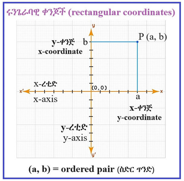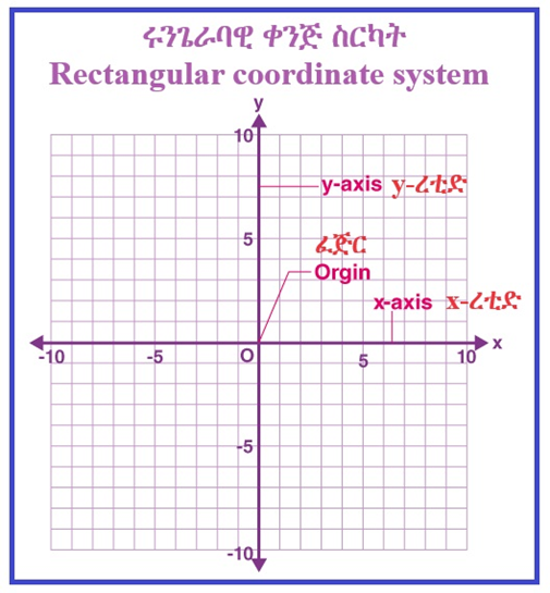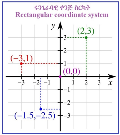 rectangular coordinate system = ሩንጌራባዊ ቀንጅ ስርካት