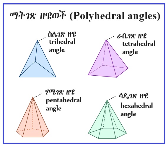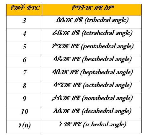 ሰቴ ዘዌ (Plane angle) እና ዳባ ዘዌ  (Solid angle)