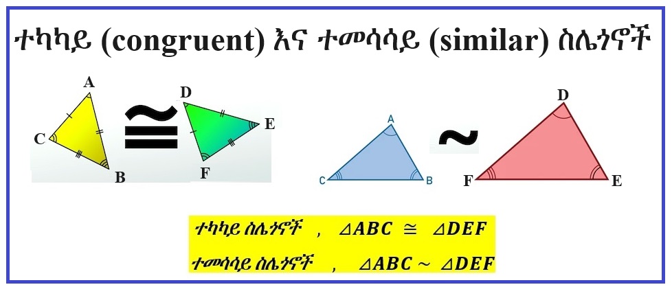 ያውቴ (identical)፣ ተመሳሳይ (similar) እና ተካካይ (congruent)
