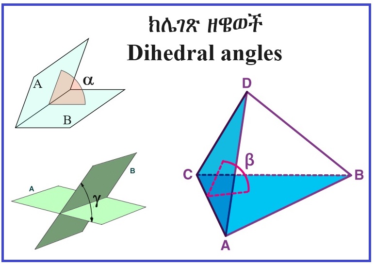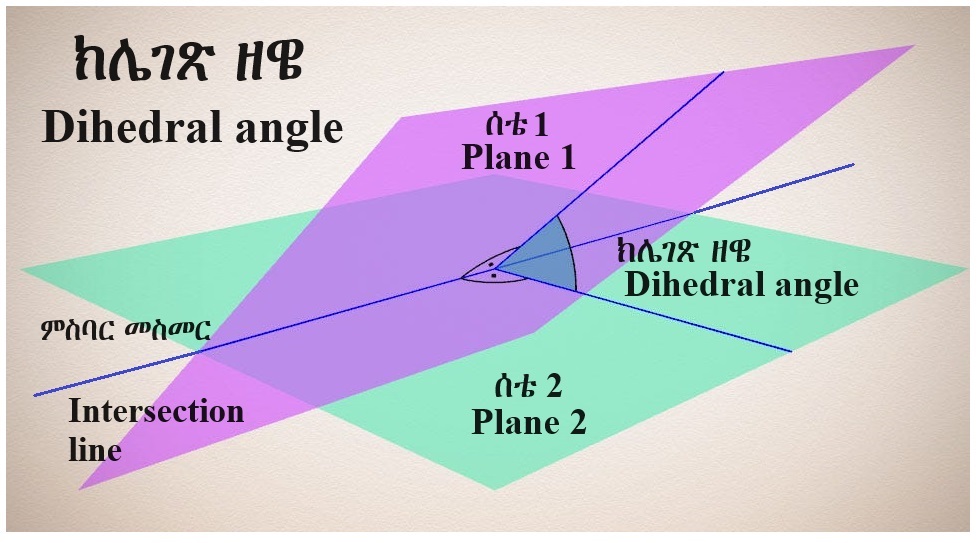ሁለት የሚመሳበሩ (intersect) ማለትም የሚጋጠሙ (meet) ወይም የሚቆራረጡ (cut) ሰቴወች (planes) ከሚመሳበሩበት መስመር (intersection line) ጋር የሚሠሩት ዘዌ ክሌገጽ ዘዌ (dihedral angle) ይባላል።
