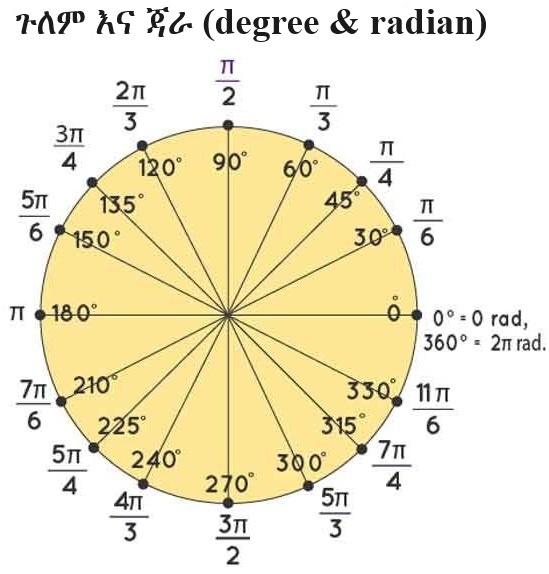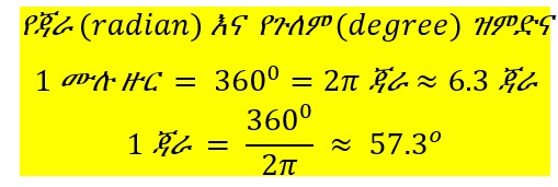የጃራ (radian) እና የጉለም (degree) ዝምድና