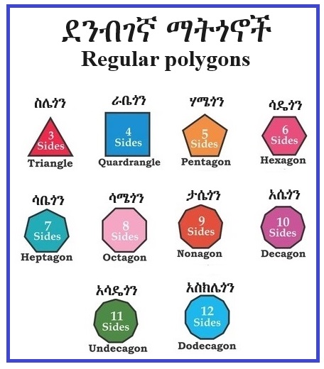 በዚህ ጦማር ላይ የምንጠቀምባቸው ያንዳንድ ቃሎች ትርጉሞች የሚገኙት ማትጎኖች (polygons) በሚለው ጦማር ላይ ስለሆነ፣ ይህን ጦማር ከማንበብወ በፊት ጦማሩን ቢያንስ ቢያንስ በገረፍታ ይመልከቱ።