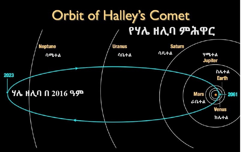 ከዘሊባወች መካከል ዠታዋቂዋ (the most famous) [ማለትም ከሁሉም ይበልጥ ታዋቂዋ] በእንግሊዛዊው ጠፈርሲነኛ (astronomer) ኤድመንድ ሃሌ (Edmon Halley) ስም የምትጠራው፣ ምድርን አንዴ ለመሖር በቅርበዛ (approximately) 76 ዓምታት የሚፈጅባት ሃሌ ዘሊባ (Halley Comet) ናት።