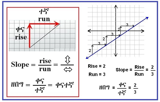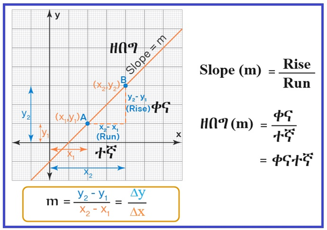 2. መስመሩ አልወርጃሚ (nonvertical) ከሆነ የመስመሩን ዘበግ (slope) እንዴት እንደምናሰላ (calculate) ይነግረናል።