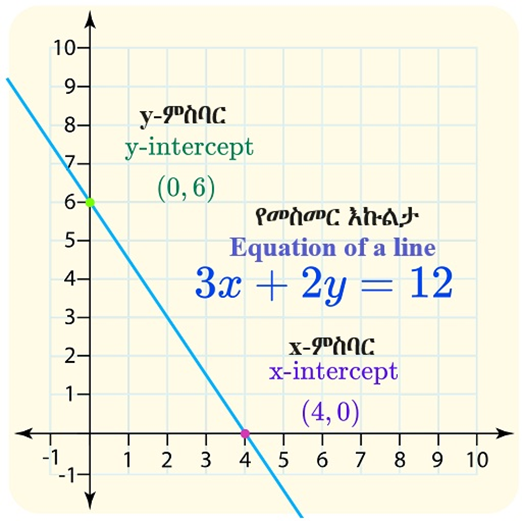 x-ምስባር (x-intercept) እና  y-ምስባር (y-intercept)
