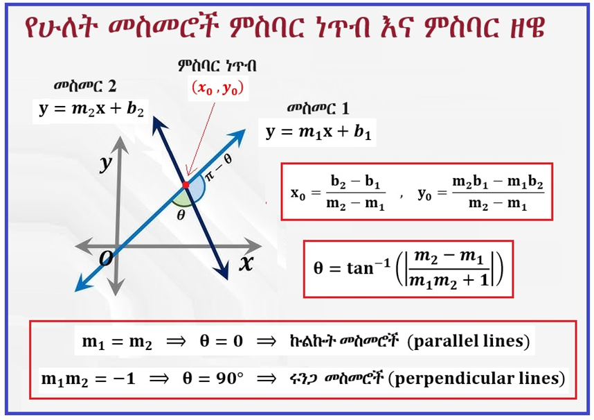 የሁለት መስመሮች ምስባር ነጥብ እና ምስባር ዘዌ